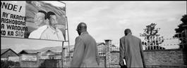 RWANDA. Kigali. December 2005. Parishioners and AIDS billboard...