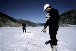 USA. Road Canyon Reservoir, Colorado. 2003. Ice fishing. Here...