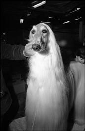 USA. New York City. 2003. Movie star-like Afghan hound.