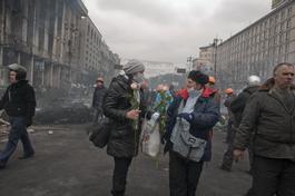 UKRAINE. Kyiv. February, 2014. A group of demonstrators.