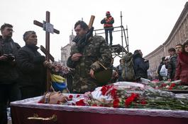 UKRAINE. Kyiv. February, 2014. Mourners in Independence Square...