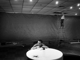 PHILIPPINES. Manila. August 28, 2014. Content moderators working...