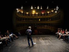 Actors from the occupied Teatro Valli rehearsing. This theather...