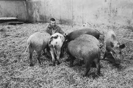 SCOTLAND. 2012. Farmer Keith Jackson with his Iron Age pigs,...