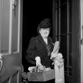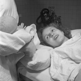 USA. March 22, 1948. Harold Miller delivering his grand daughter,...