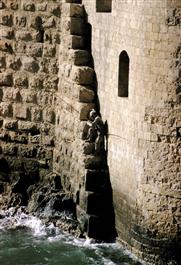 ISRAEL. Acre. Fisherman on old crusader walls.