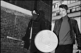 USA. New York City. 2006. Re-creation of French student protests...
