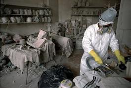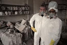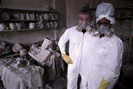 When they returned to their home they stood in knee-deep pulverized concrete and asbestos. They would spend the next 9 months in protective Hazmat suits and facemasks slowly, carefully digging out, reclaiming their world and hauling the toxic material pail by pail to dumpsters. They lost almost everything they owned. They are still at it, gently, tediously brushing off every item, then vacuuming it and covering every rescued painting in plastic sheeting. From their windows Pat and Andy have seen the closing ceremonies at ground zero but they don't yet know when they will be able to move back into their home.