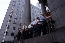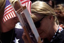 USA. NYC. June 2, 2002. "Ground Zero Closing Ceremony." Family...