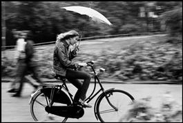 NETHERLANDS. Amsterdam. 1971. Girl on bike with umbrella.