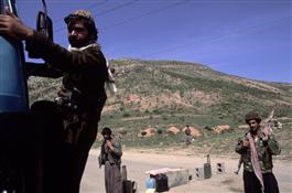 NORTHERN IRAQ. Liberated Kurdistan. 1991. A Peshmerga checkpoint...