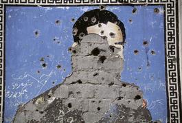 IRAQ. Qasir. 1991. A shot-up portrait of Saddam HUSSEIN.