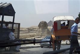 EGYPT. Cairo. 2002. People passing by the Sphinx and the pyramids...