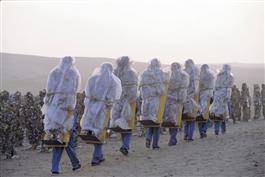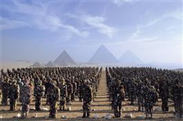 Egypt 2002, Giza Pyramids with army of 1000 "trash people". Installation...
