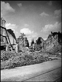 GERMANY. Cologne. 1945. Bombed out street seen through a window....