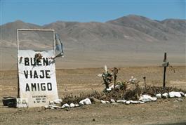 Chile, Atacama Desert, roadside memorials for traffic victims....