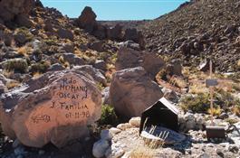 Chile, Atacama Desert, roadside memorial for traffic victims....