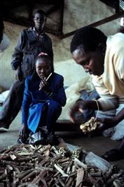 KENYA. Nakuru. 1997. Athlete Tegla LOROUPE buys medicinal bark...