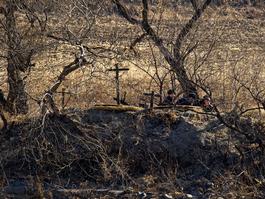 NORTH KOREA. 2007. Cross-shaped posts carrying telephone wires...