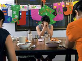 THAILAND. 2007. Giving thanks, a North Korean refugee waiting...