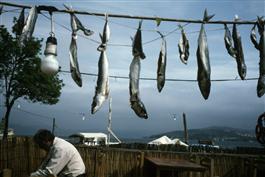 TURKEY. Istanbul. 2004. Yanikoy (upper Bosporus). Fish drying....