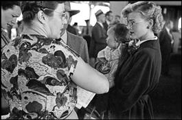 USA. New York City. 1950. Travelers aid. At the New York piers....