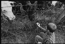 CANADA. Lambton County, Ontario. 2000. Noah TOWELL feeds cows...