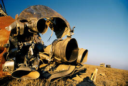KAZAKHSTAN. 2000. The booster engine section of a crashed Soyuz...