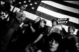 USA. Wisconsin. 2004. John Kerry supporters at a rally.