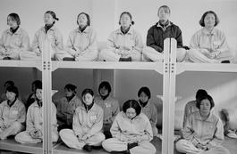 TAIWAN. Hsinchu. 2004. Female detainees with their babies wait...