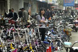 CHINA. Huaian. Jiangsu Province. 2011. Electric motor bikes...