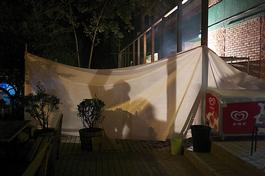 CHINA. Huaian. Jiangsu Province. 2011. 3-D projection in front...