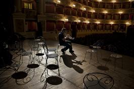 ITALY. Umbria. 2012. A musician practices their music for the...