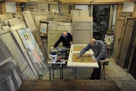 ITALY. Umbria. 2012. Artists make a mural of Jesus and Judah...