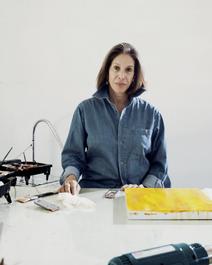 USA. Ojai, CA. 2012. Artist Elyn Zimmerman in her studio.(Photo...