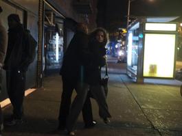 USA. Manhattan, New York. 2011. Fight outside a bar.