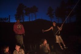 USA. Pine Ridge, South Dakota. 2011. Children tending to horses....