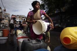 INDIA. New Delhi. 2009. People waiting in line for water where...