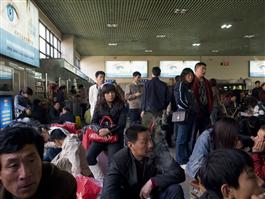 CHINA. Beijing. 2008. Passengers at Beijing West Railway Station....
