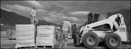 AFGHANISTAN. Winter 2010. Kunar Province. Moving skids of bottled...