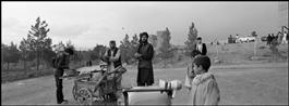 AFGHANISTAN. Kabul. 2010. Merchants selling food on a hilltop...