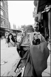 AFGHANISTAN. Kabul. 2010. Woman in a burqua selling glamor magazines....