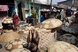 INDIA. Mumbai. 2009. Women preparing chapati in Dharavi slum....