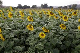 INDIA. 2009. Outside Aurangabad. Sunflower crop using GEWP (Global...