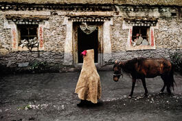 Tibet. Tagong. 2001. Pilgrim at a monastery.