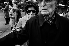 USA. Syracuse, New York. 1981. Old man with a leash.