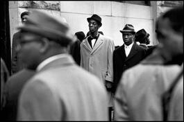 USA. 1966. Men at a Black Muslim meeting. Many hold up a book...