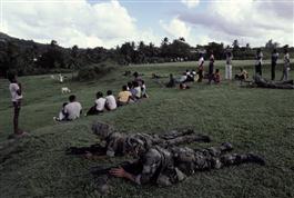 GRENADA. 1983. U.S. soldiers on a hilltop near St. George at...