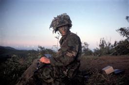 GRENADA. Sauteurs. 1983. A U.S. soldier during the invasion.