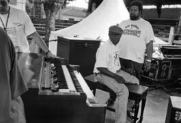 Sitting in the center US jazz musician Lucky PETERSON (organ,guitar,...